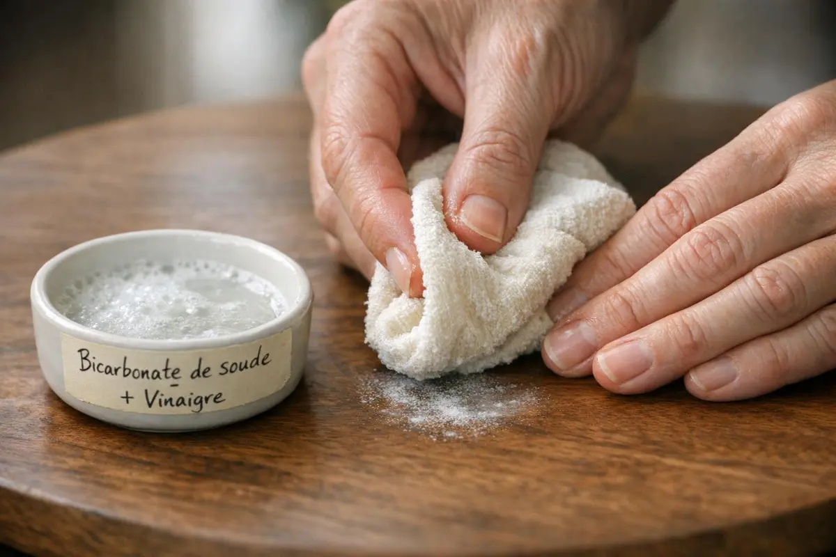 La bonne nouvelle, c’est qu’il n’est pas nécessaire de poncer tout le meuble ni d’investir dans des produits sophistiqués. Un simple mélange de deux ingrédients de cuisine, appliqué correctement, permet souvent de faire disparaître ces traces en à peine deux minutes, tout en respectant le bois.